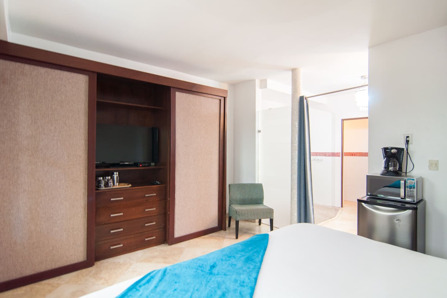 Entire space is included in this rental, please make yourself at home. Underground parking is available for 150 MXN per car per night. The pool is open from 9am-9pm. The reception desk, if needed.