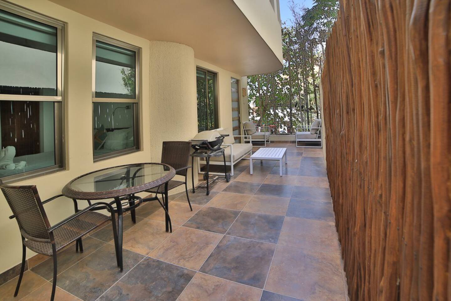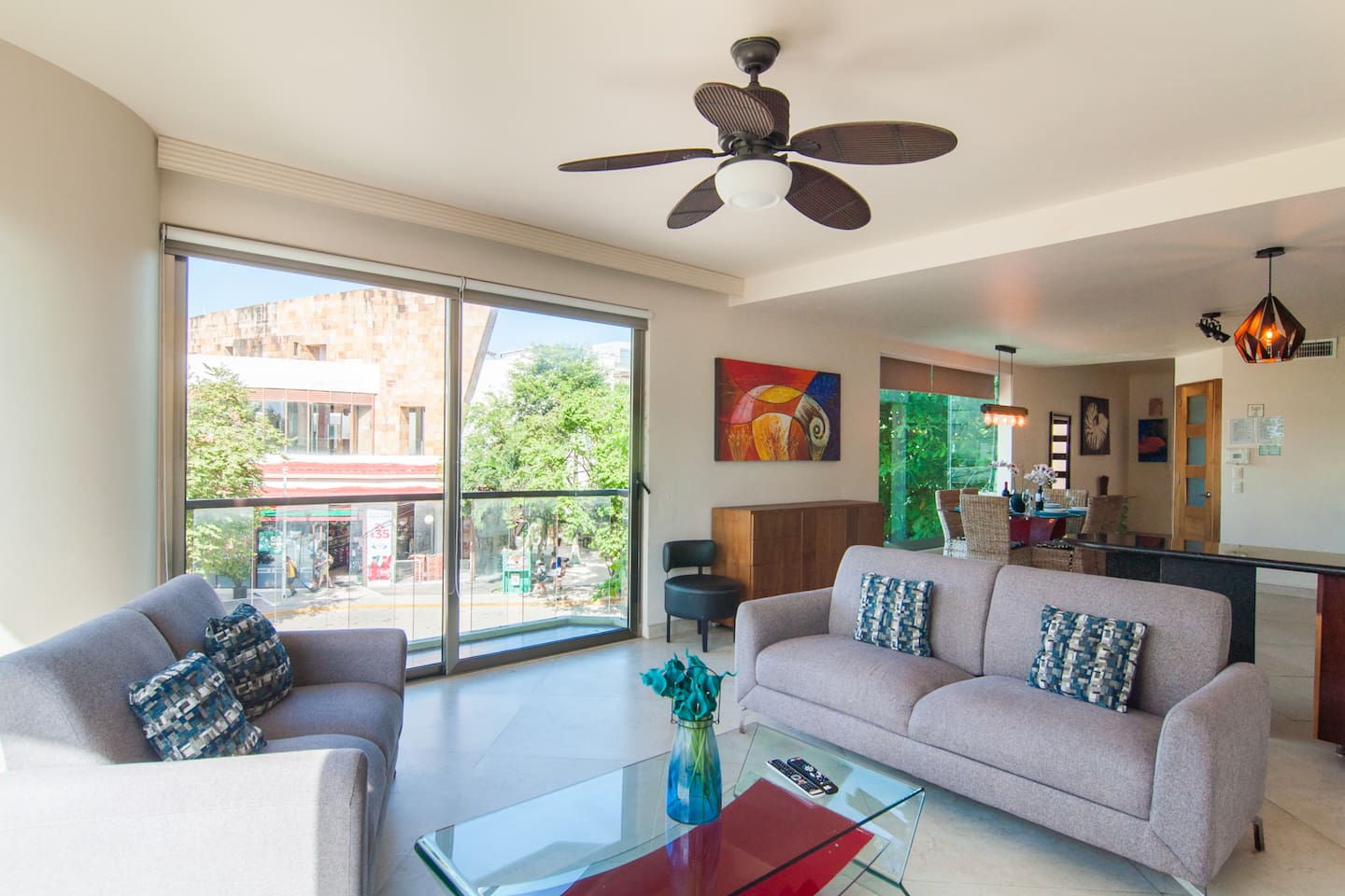 The best location in Playa del Carmen, right on the quieter part of La Quinta Avenida. → Daily housekeeping included → Bright & Sunny space → Located on the corner of 5th Ave & Calle 38 → Walk Score 99 (walk to all the best restaurants, shopping, the beach, etc) → Reverse osmosis purified drinking water from kitchen tap → Two balconies overlooking 5th Ave → The beach is a beautiful and easy 4 min walk → Onsite pool → Elevator onsite → Secured underground parking → 24 Hour concierge / security