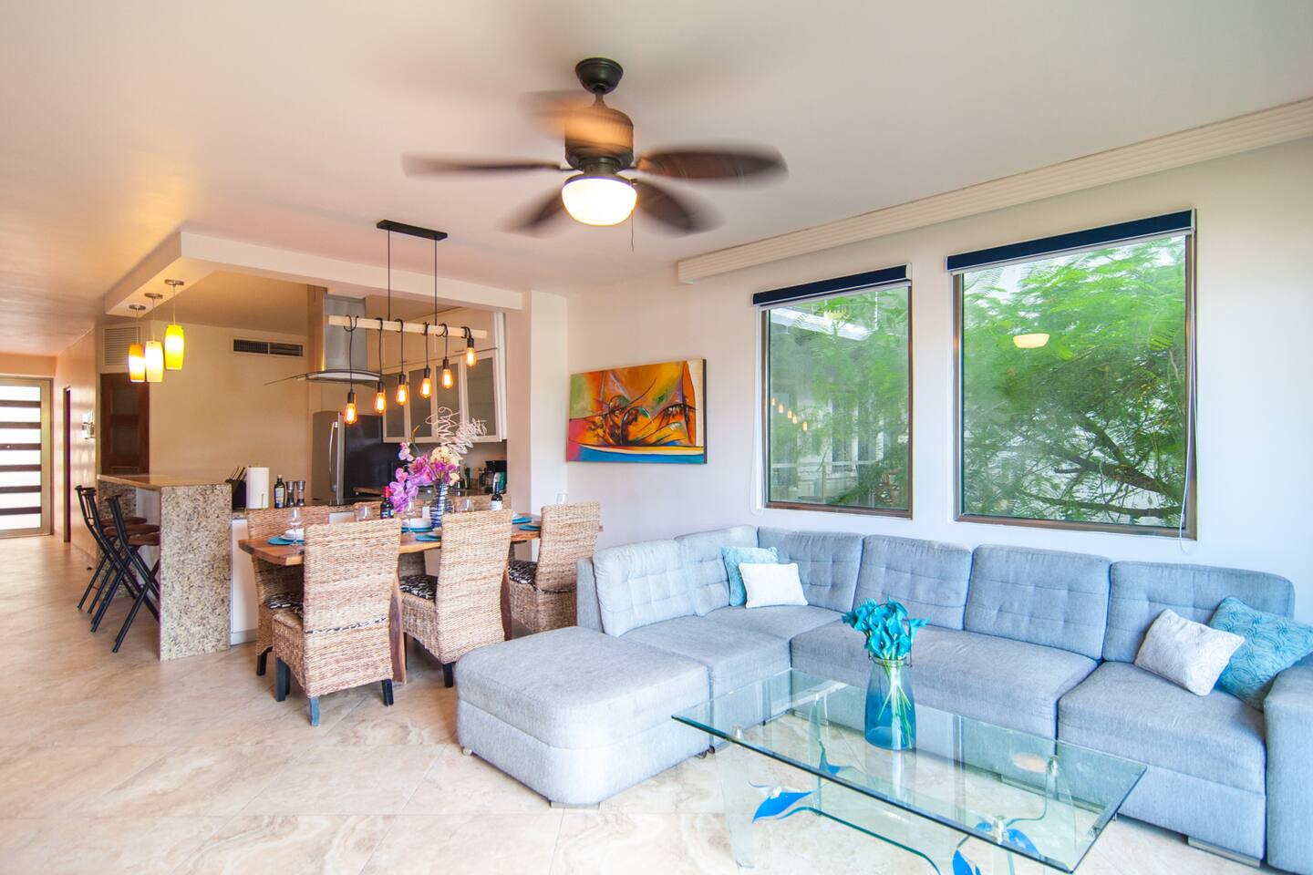 1.) No smoking or vaping anything inside. 2.) Do not wear your shoes inside the house. 3.) Keep the property and furnishings in good condition. 4.) Don’t rearrange any of the furniture or artwork. 5.) Don't stick or tape anything to the walls or ceiling, it damages the paint. 6.) Be considerate and treat our home as if it were your own. 7.) We understand that accidents happen. If you damage something by mistake, please let us know. 8.) No Parties! We define parties as anything else that may disturb our neighbors. 9.) Only guests mentioned in the booking may stay past 11:00 pm. 10.) Please be respectful of our neighbors and keep noise levels at a minimum and turn off any music after 11:00 pm, especially when on the patios. 11.) Don’t open the doors and windows when the air conditioning is on. Just ask me to raise or lower the temperature for you. 12.) No pets allowed. 13.) Please don’t eat or drink in the bedrooms. 14.) Please respect check-in and check-out times.